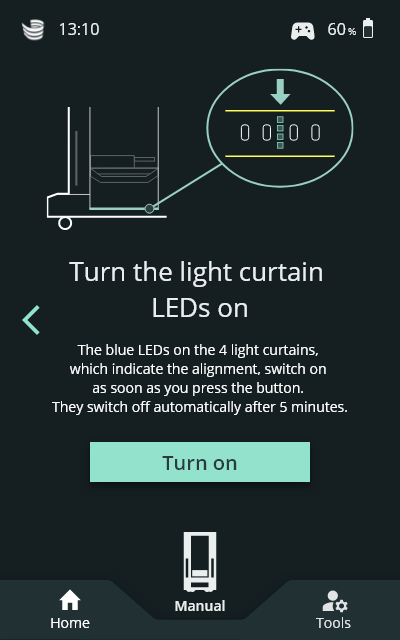Auf dem SOTO-Display unter "Einstellungen" > "Roboter-Skills" finden Sie eine neue Anleitung zur Überprüfung der Ausrichtung von Lichtvorhängen.