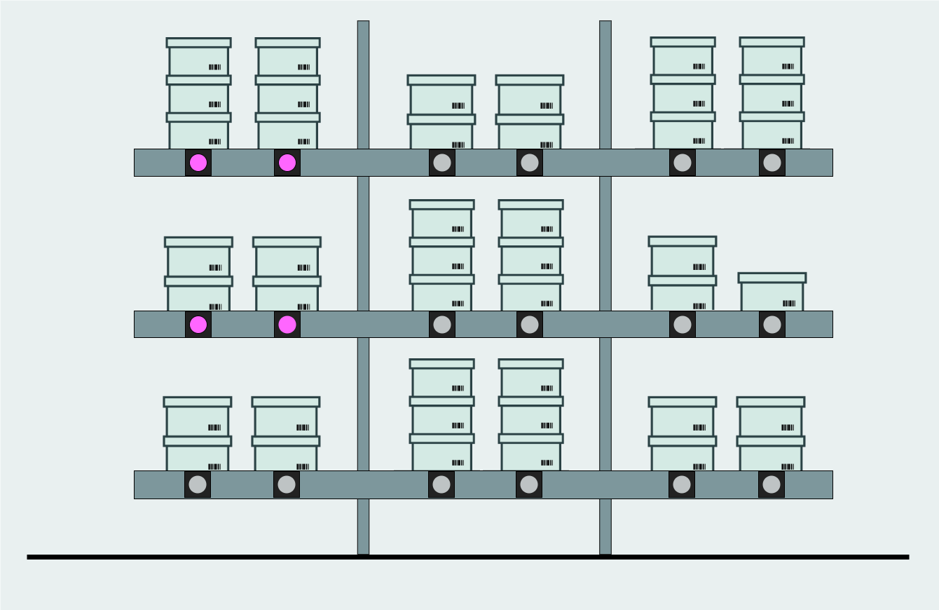 4. You can start picking boxes from any compartment that has a white or purple light. The compartments will light up in the order of cutoff times, meaning the compartment that needs to be cleared most urgently will light up first.