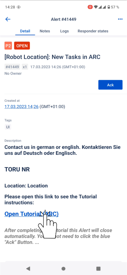 | ![]() The intervention is resolved, and the robot will be restarted. |