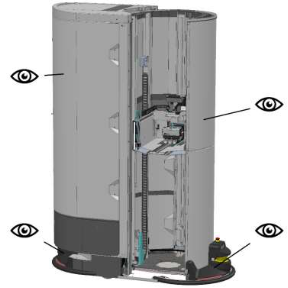 | Warning! Crushing hazard! Body parts can be caught and crushed by moving machine parts inside the robot.