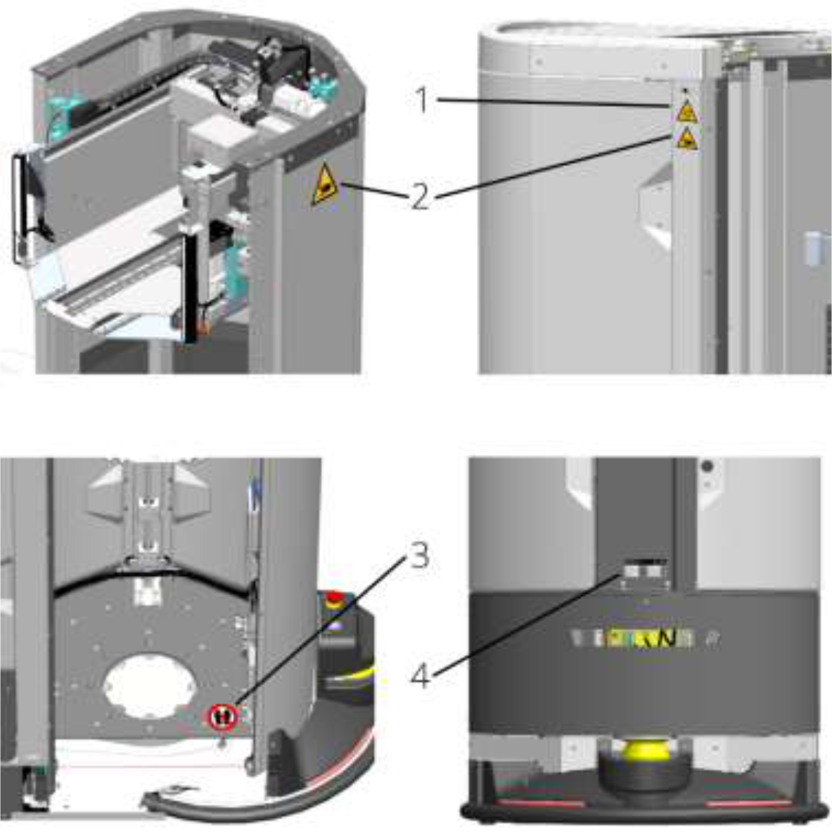 | Warning! Danger of crushing! People can reach through the picking rack at the end of the rack and reach moving parts of the robot.